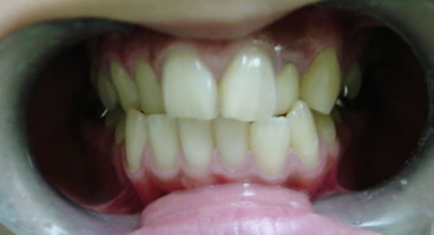 一部の歯が中に入り、横から見ると受け口のような歯並びの患者様。