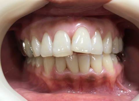 またセラミッククラウンの色をすこし白くされたいとのことで、事前に1dayホワイトニングも行った上で、白くなった歯の色に合わせてセラミッククラウンの色も選びました。